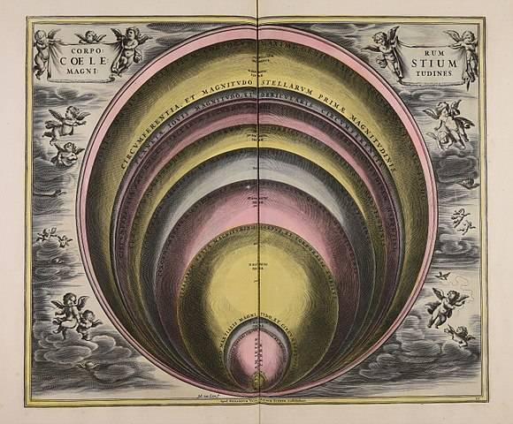 Nell’immagine: Mappa antica che mostra le dimensioni dei corpi celesti, digitalizzata dalla Biblioteca Comunale di Trento. Di Jan van Loon, Pubblico Dominio, via Wikimedia Commons