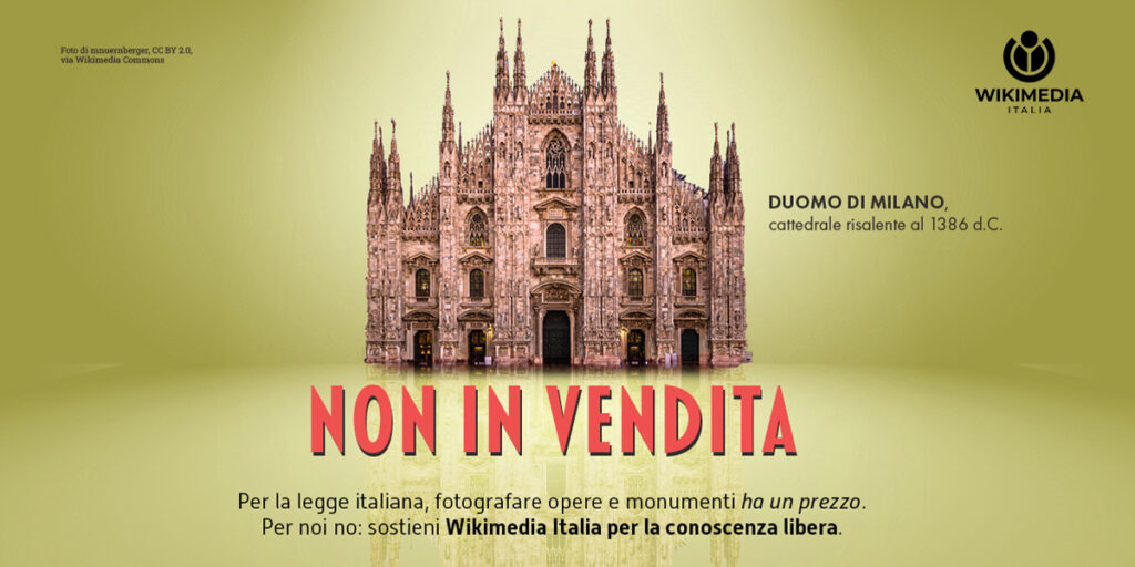 Per la legge italiana fotografare opere e monumenti ha un prezzo, per noi no. Sostieni Wikimedia Italia. Contribuire alla conoscenza libera significa produrre testi, immagini, dati […]