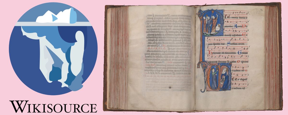 Immagine: Collage Logo Wikisource, di Wikimedia Foundation, CC BY-SA3.0 e Archive-ugent-be-AD88306A-B841-11E8-9E3D-BC34FC05B1B6 DS-343, di Biblioteca dell’Università di Gand, CC BY-SA 4.0, da Wikimedia Commons. L’immagine derivata è di Wikimedia Italia, pubblicata con licenza CC BY-SA 4.0.