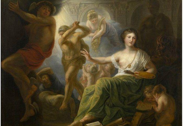 Nell’immagine: André Corneille Lens, Ercole protegge pittura da ignoranza e invidia, pubblico dominio, via Wikimedia Commons