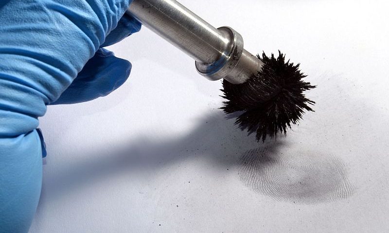 Nell’immagine: Forensic scientist develop a latent fingerprint with magna brush di Daekow (2015), da Wikimedia Commons CC BY-SA 4.0.