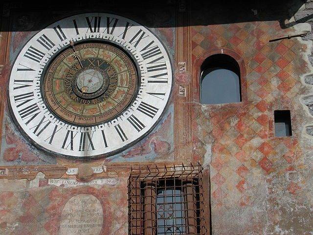 Nell’immagine: l'”Orologio Fanzago” di Clusone (BG) in Val Seriana. Foto non attribuibile automaticamente, scattata probabilmente da Paolo da Reggio, CC-BY-SA-3.0, via Wikimedia Commons