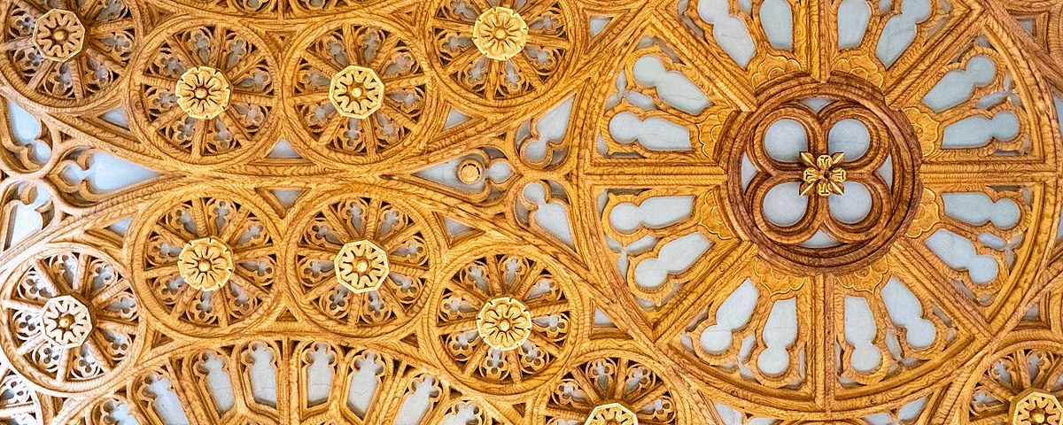 Nell’immagine: Il soffitto della Livraria Lello a Porto. Di xiquinhosilva from Cacau, CC BY 2.0, via Wikimedia Commons
