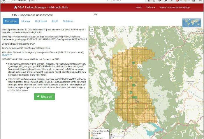 Per agevolare tale operazione, la ONG HOT – Humanitarian OpenStreetMap Team ha sviluppato un applicativo ad hoc, il Tasking Manager, che permette di coordinare e monitorare le evoluzioni del lavoro di mappatura in casi di emergenze.