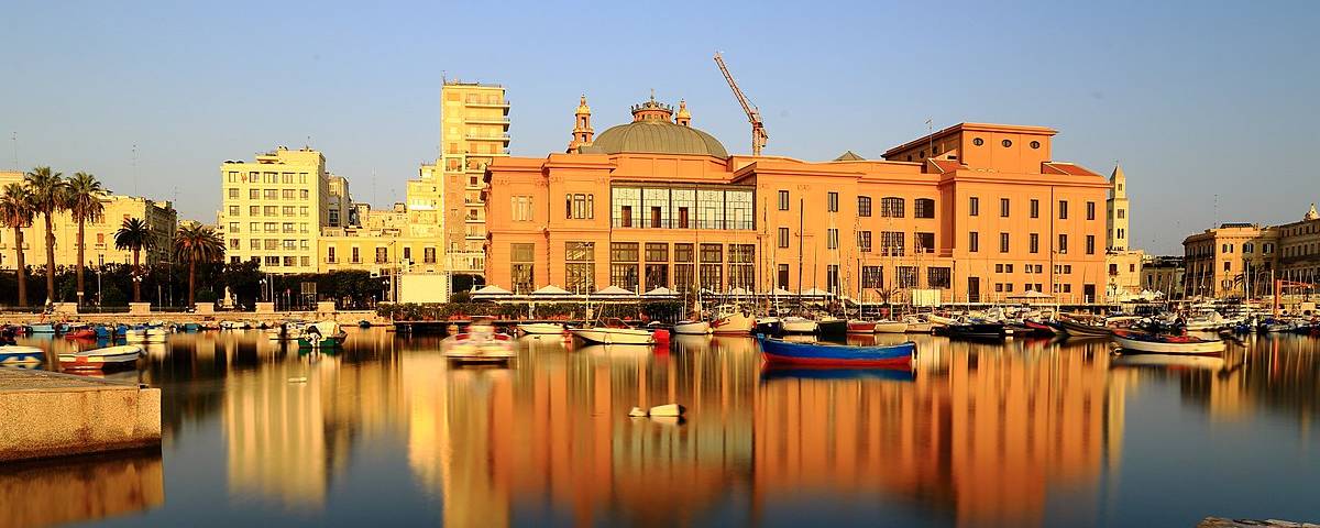 Nell’immagine: Il Teatro Margherita di Bari, unico in Europa costruito su palafitte, riflesso in tutta la sua bellezza. Di Luigi Eletto, CC BY-SA 4.0, via Wikimedia Commons