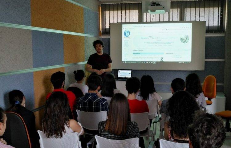 Nell’immagine: Andrea Zanni, amministratore di Wikisource, illustra il funzionamento della piattaforma agli studenti del Liceo scientifico Galileo Galilei di Potenza