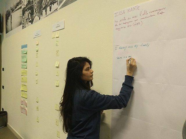 Nell’immagine: Attività di storytelling e selezione voci nell’ambito del progetto Wikipedia 4 Refugees. Di Martina Puppi (opera propria), CC BY-SA 4.0, via Wikimedia Commons